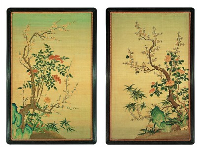 清乾隆紫檀边缂丝花卉图对屏 南京博物院供图